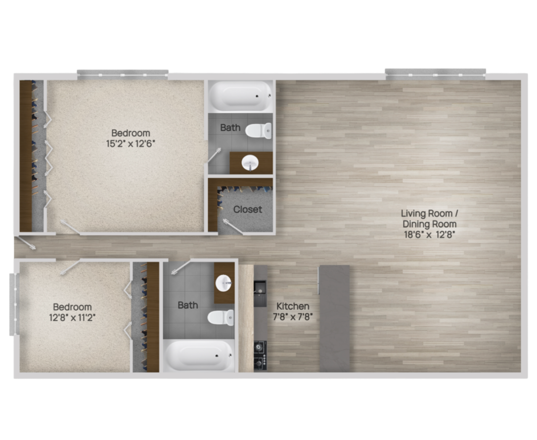 2 Bedroom | 2 Bath | 960 Sq. Ft