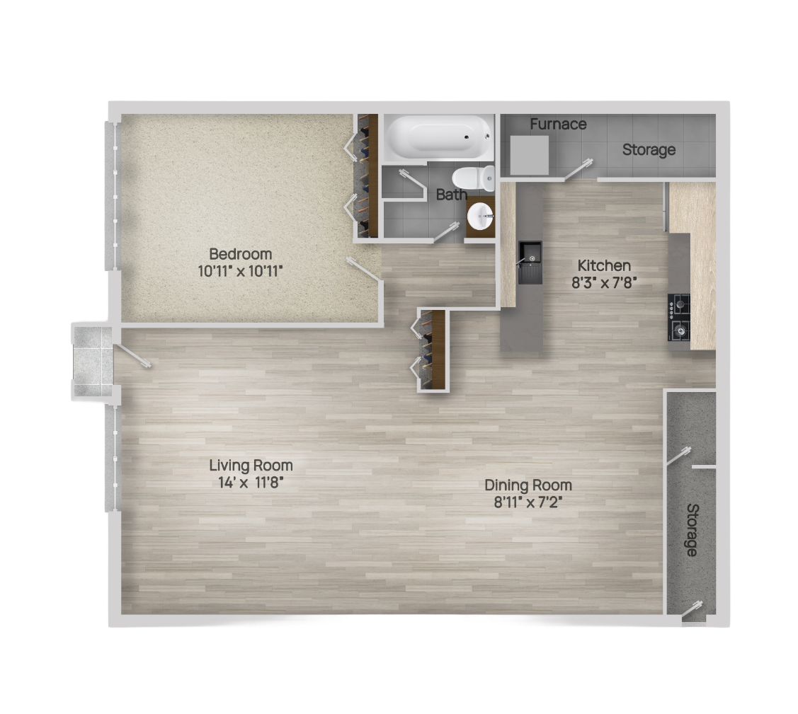 1 Bedroom | 1 Bath | 850 Sq. Ft
